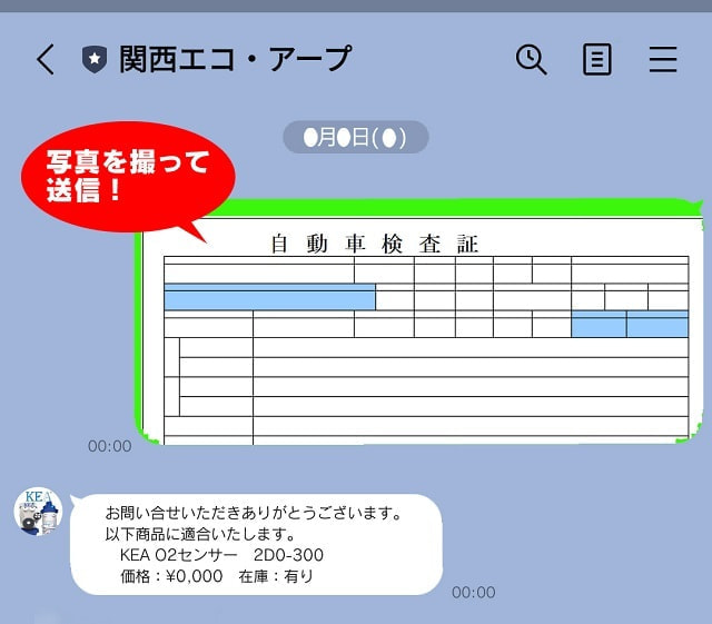 トークからですと、お手元の自動車検査証の写真を撮ってそのまま送信いただければ弊社で確認し適合する商品をご案内いたします。